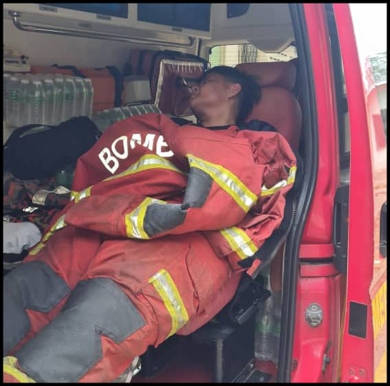Mangsa berehat di dalam ambulans EMRS JBPM ( Sumber Foto: Ihsan JBPM Sabah )