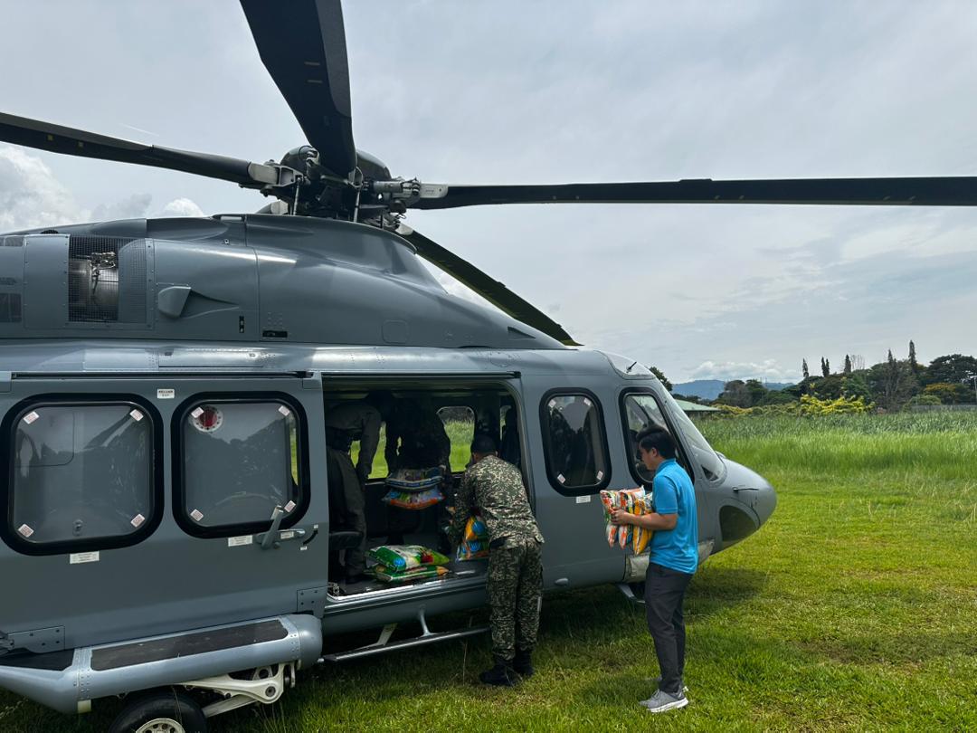 Dalam operasi tersebut, bekalan makanan dihantar menggunakan pesawat helikopter AW139 milik Tentera Udara Diraja Malaysia (TUDM) bagi memastikan keperluan asas sampai kepada penduduk walaupun laluan darat terputus.