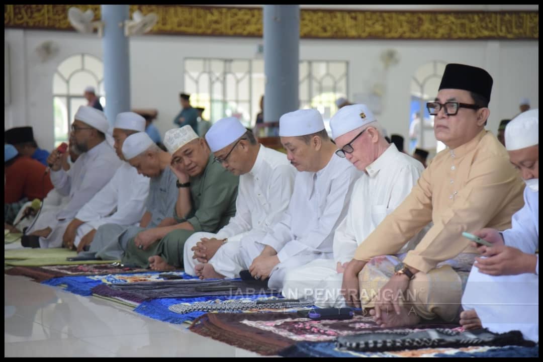TUARAN, SABAH – Ketua Menteri, Datuk Seri Hajiji Noor menunaikan solat sunat Aidiladha bersama seribu jemaah di Masjid Haji Noor, Kampung Serusup, pagi tadi.
