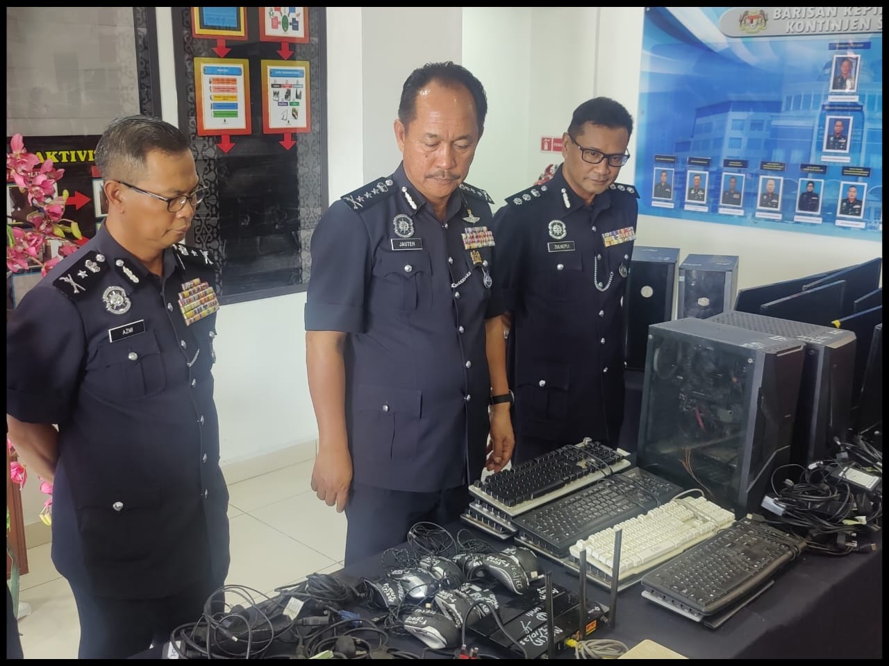 Antara rampasan termasuk komputer, telefon bimbit, kad ATM dan modem wifi yang dianggarkan bernilai RM20,000.