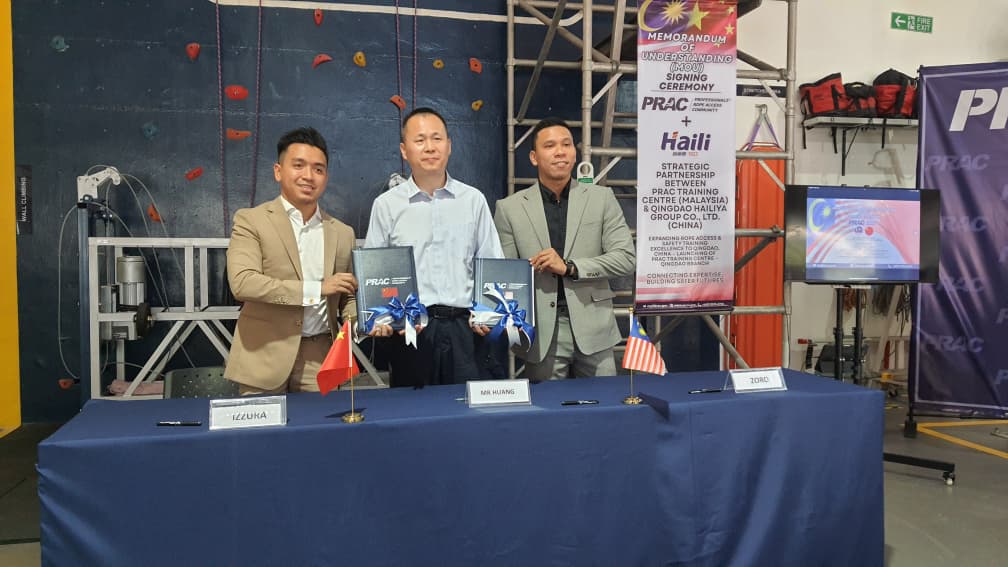 KUALA LUMPUR: Pusat Latihan Professionals Rope Access Community (PRAC) Malaysia memeterai Memorandum Persefahaman (MoU) strategik bersama Qingdao Hailiya Group Co., Ltd. dalam usaha memperkukuh kerjasama antarabangsa khususnya dalam bidang latihan, pembangunan kompetensi serta perkongsian kepakaran industri.