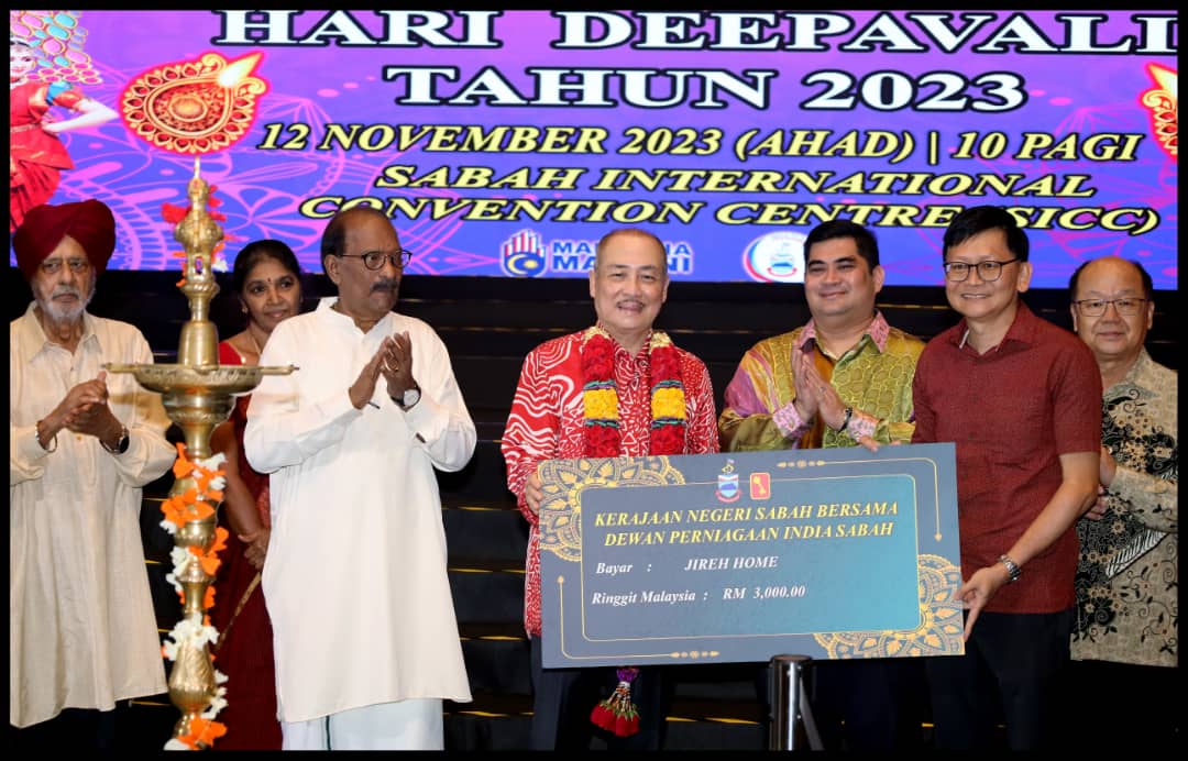 Dalam sambutan itu, dua keping cek bernilai RM3,000 setiap satu telah disampaikan kepada Persatuan Orang Buta Sabah dan Jireh Home Tuaran daripada kerajaan negeri dan Dewan Perniagaan India Sabah.