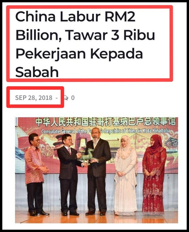 Kenyataam Shafie pada 28 Sept 2018 yang menyatakan pelabur China akan melabur RM2 bilion di Sabah dengan menawarkan 3,000 peluang pekerjaan kepada penduduk tempatan, sehingga kini selepas 2 tahun janji Shafie hanya tinggal janji…(Sumber foto dipetik daripada Bernama, FMT dan portal berita tempatan)